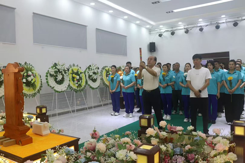 (4)在天堂墓園骨灰告別大廳內(nèi),共同為所有安葬在天堂墓園內(nèi)各位親人舉行公祭,向他們上香,默哀,致敬。祈福他們?cè)谔焯蒙闲腋0部担砀K麄冏訉O后代吉祥如意,祈福守護(hù)仙靈的員工們事事如意。