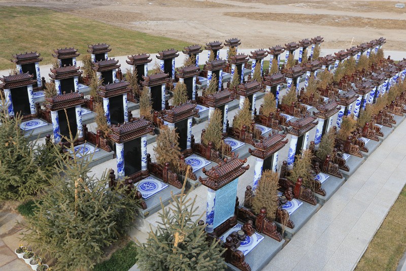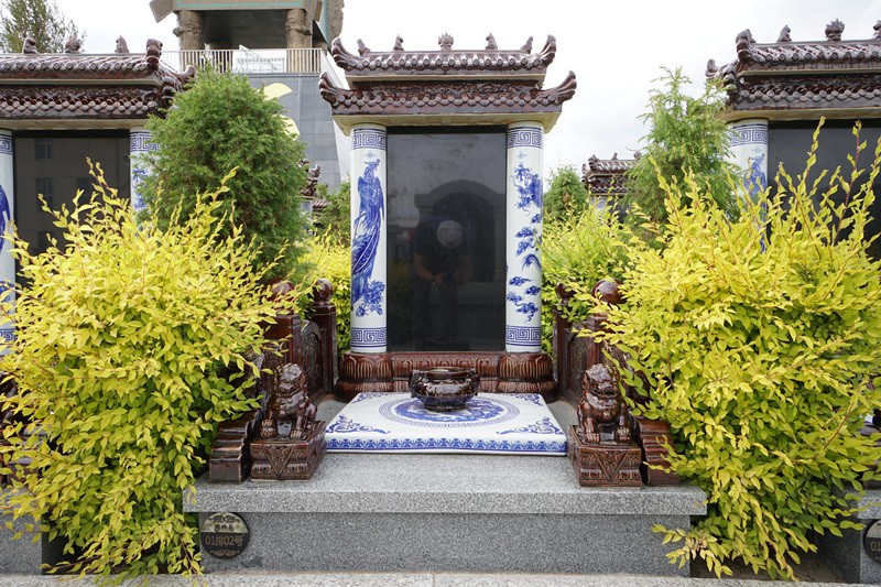 國粹苑苑區(qū)位臨祈福大道,背靠四足方鼎,東側(cè)有金龍護(hù)佑,是全園綠化率最高的苑區(qū),碑型是景德鎮(zhèn)景泰藍(lán)陶瓷碑設(shè)計(jì),碑帽上有吉祥瑞獸屹立,具有辟邪、聚財(cái),福佑家族的寓意。